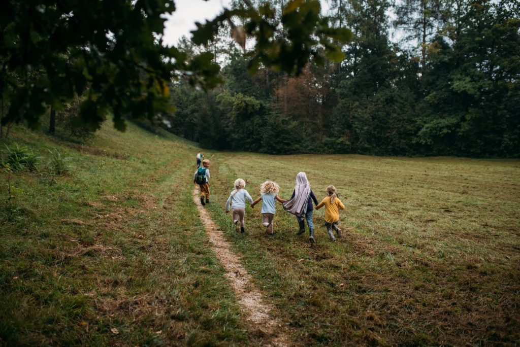 V košarico smo zbirali jesenske darove in otroci so kar leteli skozi gozd in čez travnike.
